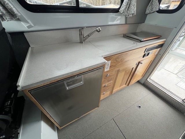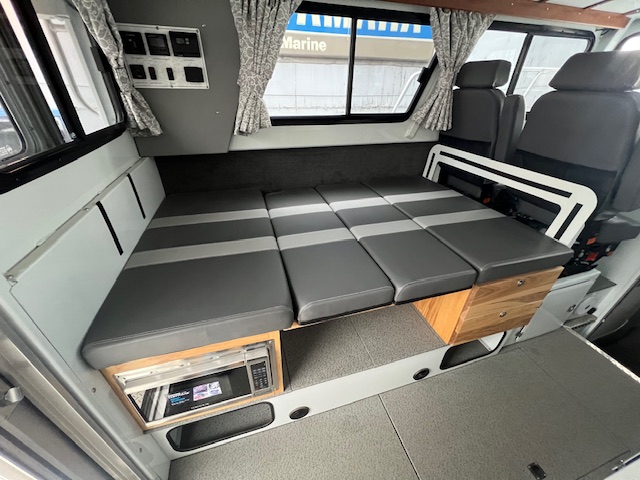 • Seating: Starboard, heavy-duty truck seat, 72” bench -Port, 42” forward facing bench & dinette with microwave (converts to bed)