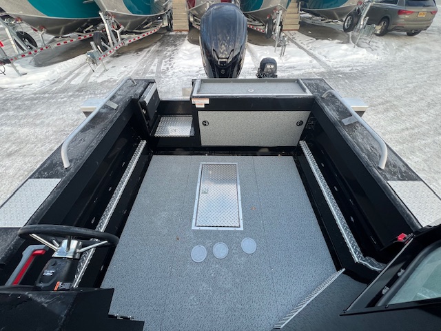 • Bow Deck: Treadplate, self-bailing, with storage